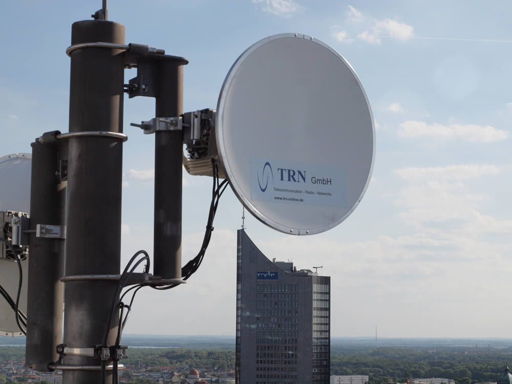 Die Lösung bestand in Richtfunkverbindungen mit aktivem Repeater, installiert auf dem Wintergartenhochhaus, wodurch eine zuverlässige Line-of-Sight-Kommunikation möglich wurde. Im Jahr 2011 erfolgte die Umsetzung mit Ceragon-Systemen, während 2021 moderne NEC iPasolink-Technologie eingesetzt wurde, um die Verbindung den aktuellen technischen Anforderungen anzupassen und zukunftssicher zu gestalten.