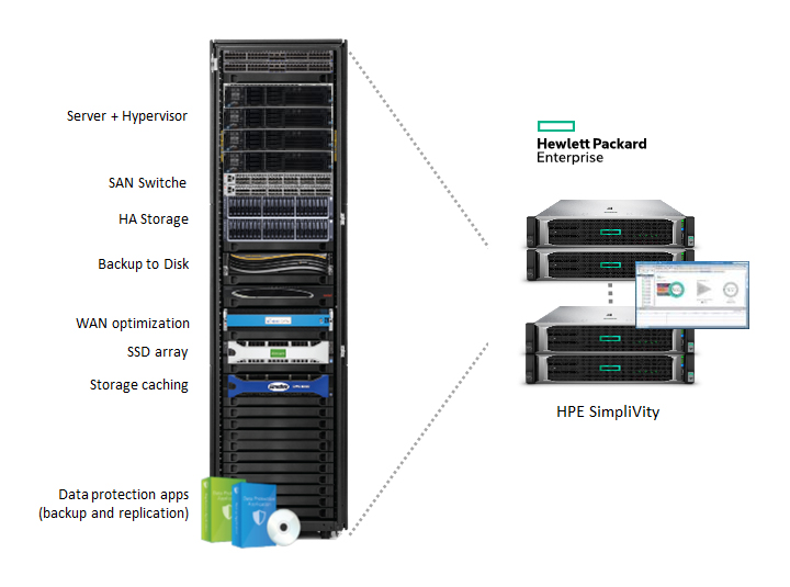 Integrierte, softwaredefinierte Rechen-, Speicher- und Netzwerkfunktionalität – mit fortschrittlichen Datenservices für mehr Dateneffizienz, einen besseren Datenschutz, sowie ein VM-orientiertes Management und mehr Mobilität.